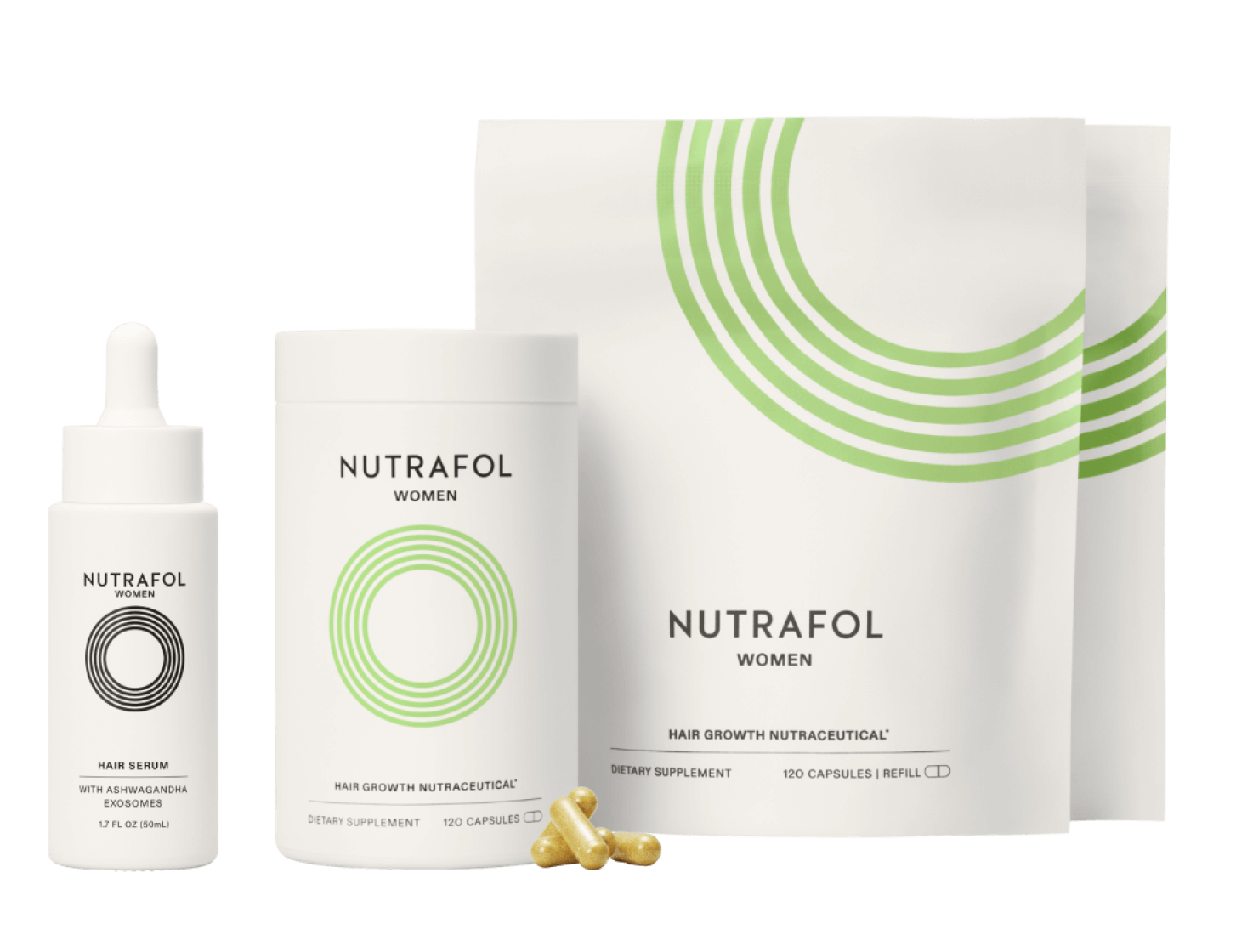 A physician-formulated hair growth system for visibly thicker, stronger hair in as little as 3 months. Featuring our Hair Growth Nutraceuticals with 100% drug-free, clinically tested ingredients to target root causes of thinning from within, and our hair serum with patent-pending Ashwagandha Exosomes to replenish nutrients directly at the scalp.